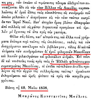 I found some letters he wrote as back as 1836 to eminent Greeks and Macedonians who migrated to Greece after the establishment of the Greek kingdom.