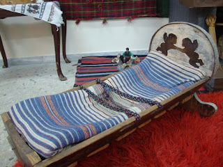 Είναι μικρό ξύλινο φορητό κρεβατάκι, καμωμένο από τρεις κοντόπλατες σανίδες καρφωμένες σε σχήμα σκαφιδιού και στερεωμένες σε δύο τέτοιες κάθετες με στρογγυλή βάση, πλατύτερη και πιο ψηλή προς το κεφάλι και χαμηλότερη των ποδαριών η άλλη. Υπήρχαν σαρμανίτσες σκέτες, άλλες χρωματισμένες με διάφορα επάνω στολίσματα, όπως λουλούδια κ.α. Εκεί μέσα τυλιγμένο στα σπάργανά του, σε τρόπο που μόνο το κεφάλι μένει κάπως ελεύθερο, ξαπλώναν το μικρό πάντοτε ανάσκελα. Αφού το έδεναν με μια ειδική μάλλινη παρδαλή τριχιά (φασκιά) που την περνούν πολλές φορές στις τρύπες που υπάρχουν επίτηδες στις ημικυκλικές πλαϊνές σανίδες, έτσι που να είναι αδύνατο να λυθεί από μοναχό του, το σκεπάζανε. Ήταν τόσο καλά στερεωμένο στη σαρμανίτσα, το μωρό ώστε πολλές φορές οι μανάδες βύζαιναν το μωρό στρέφοντας ελαφρώς αυτήν και το σώμα τους, χωρίς να ελευθερωθεί το μωρό. Για να μη πουμπωθεί (σκάσει) το μωρό, υπήρχε πάνω απ΄το κεφάλι του (εξάρτημα της κούνιας) ειδικό ξύλινο στεφάνι που το έλεγαν «κρόθο». ‘Ετσι το μωρό ανάπνεε και κοιμόταν άνετα και κουνώντας το η μάνα του νανουρίζοντας ταυτοχρόνως, αποκοιμιόταν. Το κούνημα της σαρμανίτσας γινόταν και με τα πόδια, όταν η μάνα είχε πιασμένα τα χέρια με γνέσιμο, μπάλωμα, ή πλέξιμο.
