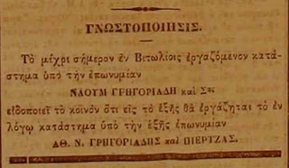 Ελληνικό κατάστημα στο Μοναστήρι. Εφημερίδα ΕΡΜΗΣ, 29 Απριλίου 1880. Πηγή: εδώ |