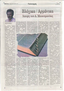 Writer Anastasios N. Tsikiotis writes in his book (pp. 123-24), entitled ‘Speaking of Aromanian-speaking Hellenism':