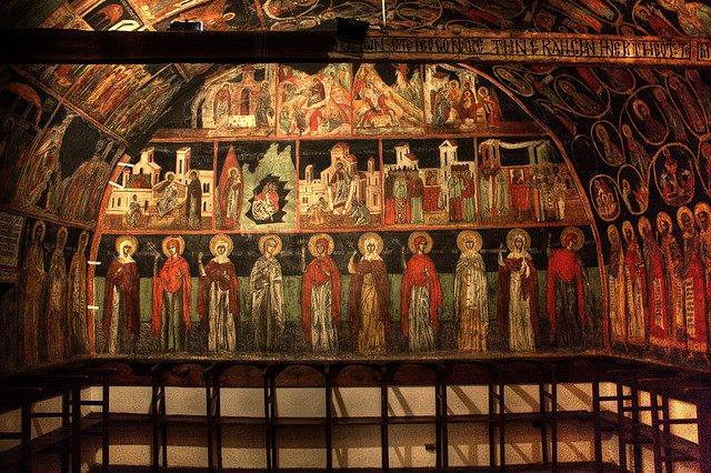 Λεζάντα φωτογραφίας: Η εκκλησία της Γέννησης του Κυρίου στο Αρβανιτοχώρι (Arbanas). Οι αγιογραφίες στον γυναικονίτη είναι του δεύτερου μισού του 17ου αιώνα. Εντυπωσιακό είναι ότι ανάμεσα στους αγίους μπορεί κανείς να δει τις μορφές του Ομήρου, του Αριστοτέλη και του Πλάτωνα.
