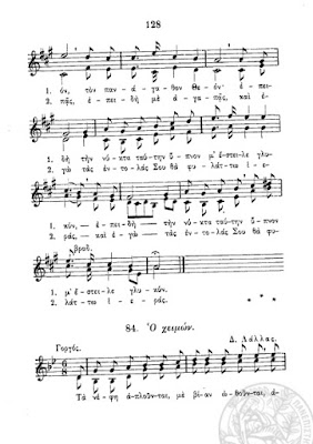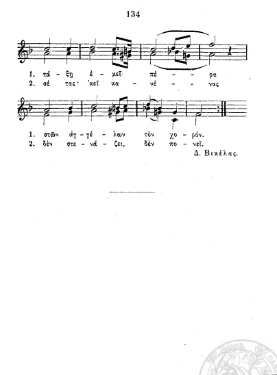 Ο Αναστάσιος Μάλτος στο τέλος του έργου του, στις σελ. 133-134, παρουσιάζει μια ακόμη σύνθεση. Πρόκειται, όπως αναφέρει, για μελοποίηση του Γ. Ν. Μάλτου (1833 - 1871) από το Μεγάροβο που επέλεξε το ποίημα ενός από τους γνωστούς πρωτεργάτες του ολυμπισμού, του λογίου Δημητρίου Βικέλα με τίτλο ''Εκεί πέρα'', το οποίο παρατίθεται παρακάτω.