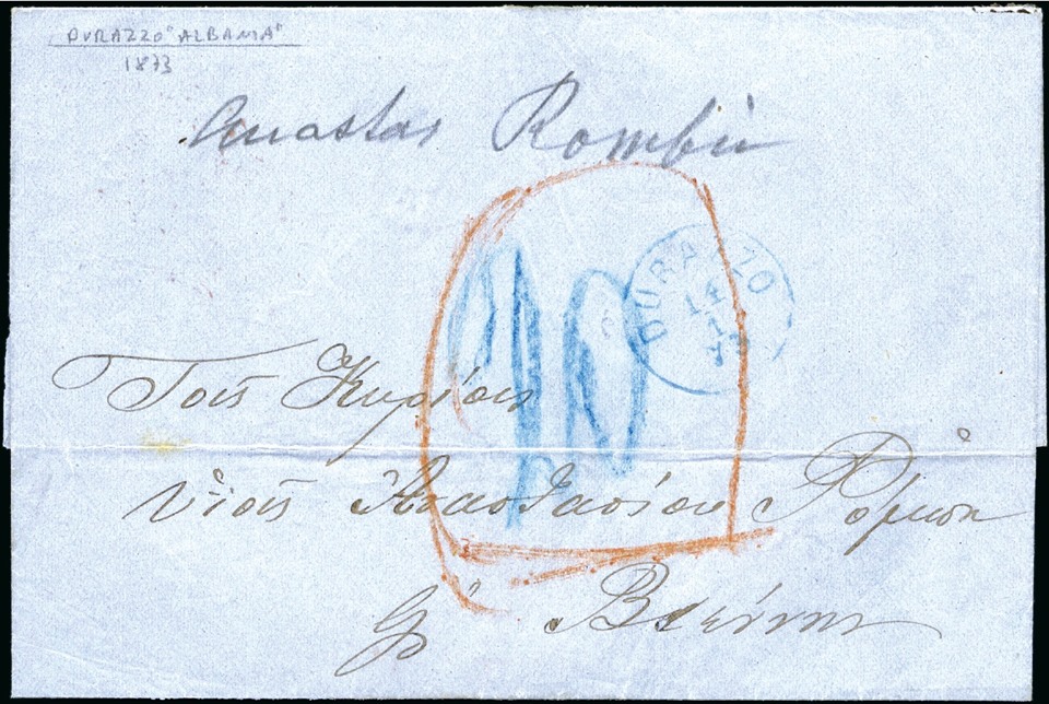 Επιστολή του 1873 από το Δυρράχιο προς τους Υιούς Αναστασίου Ρόμπη στη Βιέννη. Οι Έλληνες έμποροι, όπως προκύπτει από διάφορες επιστολές, εξακολουθούν να απευθύνονται στους Ρόμπη στα ελληνικά.