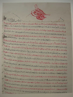 Σουλτανικό διάταγμα (μπεράτι), με ημερομηνία 25/3/1841, με το οποίο παραχωρούνται προνόμια στον Άγγελο Στεφάνου Ρόμπη από την Αχρίδα για εμπόριο στην Ευρώπη, την Περσία και την Ινδία. Σουλτάνος: Abdülmecid I. Πηγή: wikimedia