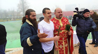 Ο 17χρονος Mihail Komboyanov, βλαχόπουλο με καταγωγή από την Γραμμουστιάνικη οικογένεια Κομπογιάννη, ήταν φέτος ο τυχερός που έπιασε τον Σταυρό στην τελετή των Θεοφανείων της Πέστερας στη νότια Βουλγαρία.