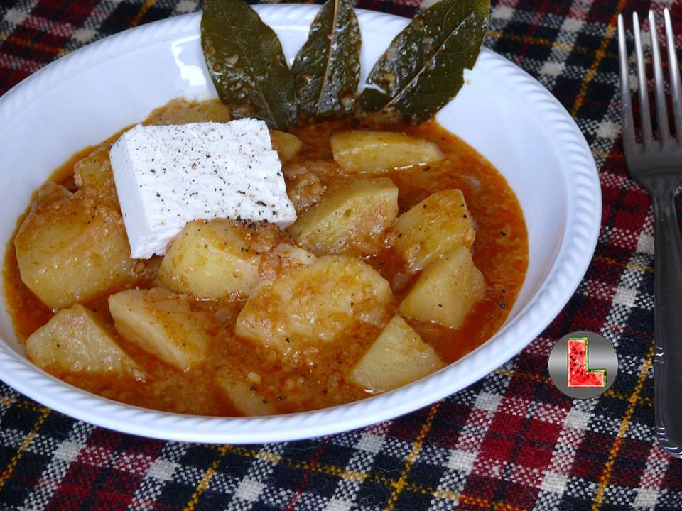 Καθαρίζουμε τις πατάτες και τις κόβουμε σε χοντρά κομμάτια, το κρεμμύδι σε κυβάκια, το σκόρδο σε φετούλες και σοτάρουμε σε μια κατσαρόλα μαζί με το ελαιόλαδο. Συμπληρώνουμε με καυτό νερό, τόσο όσο να σκεπάζει καλά τα υλικά μας, και προσθέτουμε αλάτι, πάπρικα καθώς και φύλλα δάφνης. Αφήνουμε να βράσουν για 30 λεπτά και συμπληρώνουμε τον τραχανά ανακατεύοντας ελαφρώς. Συνεχίζουμε το βράσμο για δέκα λεπτά περίπου και το φαγητό μας είναι έτοιμο. Σερβίρουμε με φρεσκοτριμμένο πιπέρι και με τυρί φέτα ή γιδοτύρι.