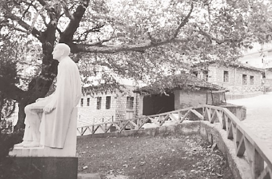 ~ Φωτο: Ο ανδριάντας του βαρώνου Μιχαήλ Τοσίτσα στο Μέτσοβο. Στο βάθος ο βρεφονηπιακός σταθμός (Φωτ. Τ. Παπαζήση).
